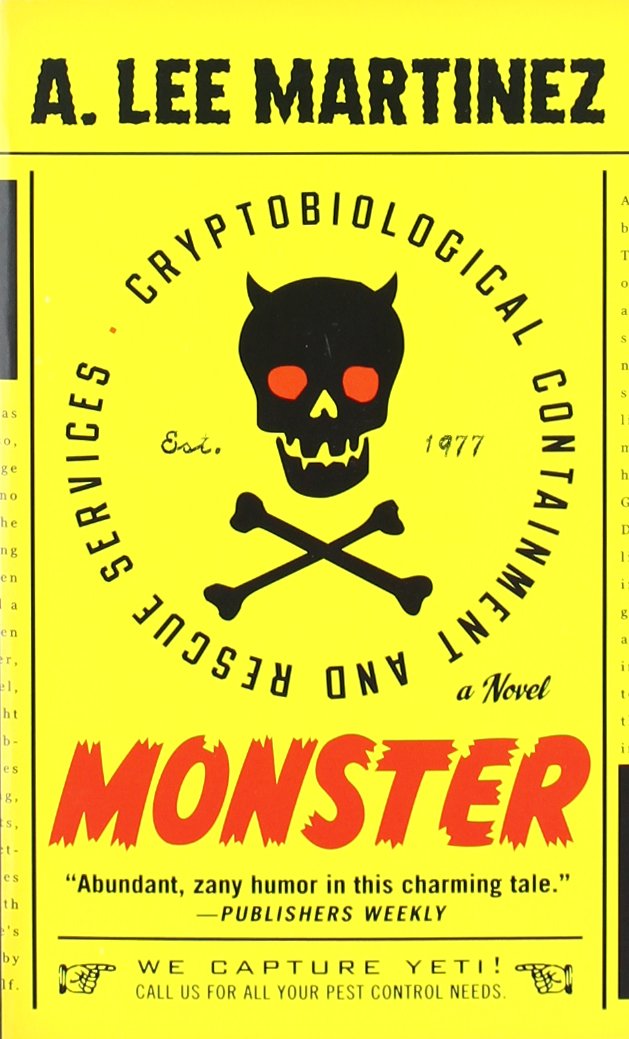 Esta novela de fantasía es otra de mis adquisiciones en la liquidación de ABC Libros. ¿Que qué me hizo comprarlo? Miren la portada amarillo chillón con el anuncio de "Servicio de Salvamento y Captura Criptobiológica". ¿No les llama eso la atención? Fuí como una mosca a la miel.